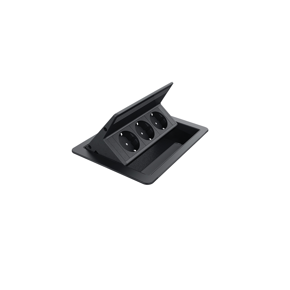 FLIP UP PUSH 3xSHUKO SOCKET, BLACK