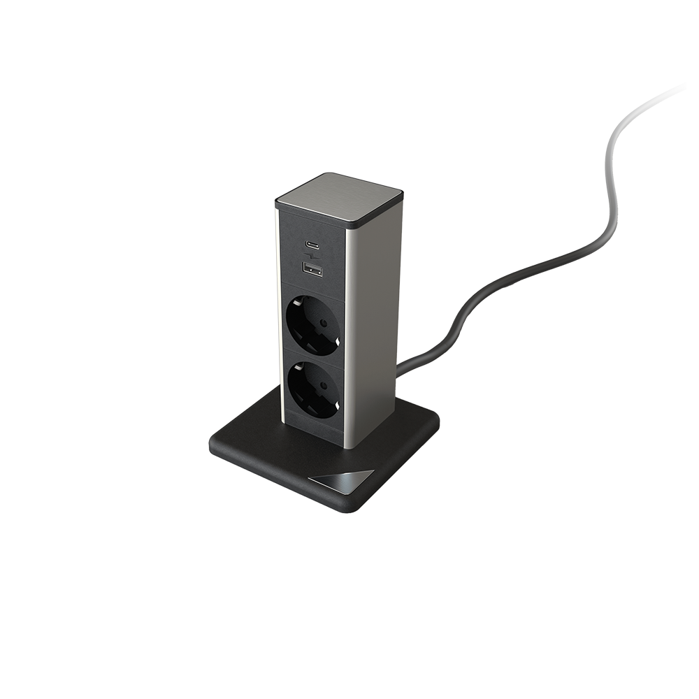 STAND UP 2xSHUKO SOCKET+1xUSB A/C 20W, BLACK/INOX